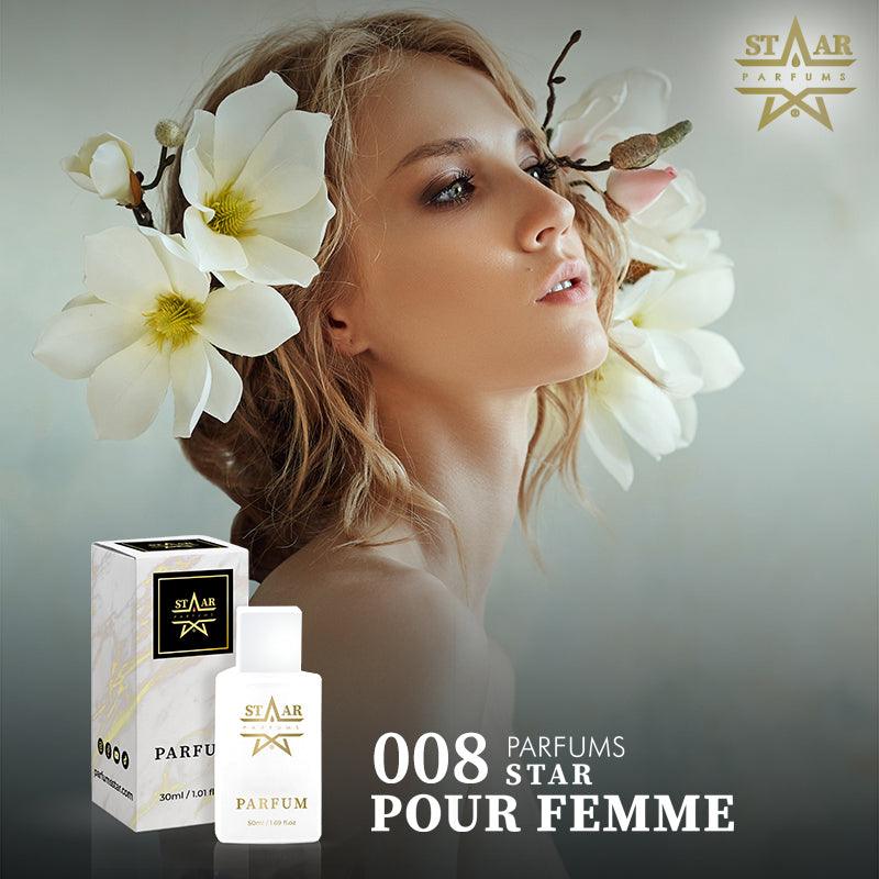 Explorez la fraîcheur et la vitalité de Star n°008 ,Optez pour nos parfums équivalents, une manière unique de vivre l'énergie revitalisante des fragrances prisées.
