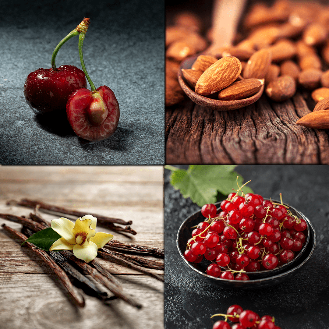 • Notes de tête : Cerise noire, Amande douce, Baies rouges