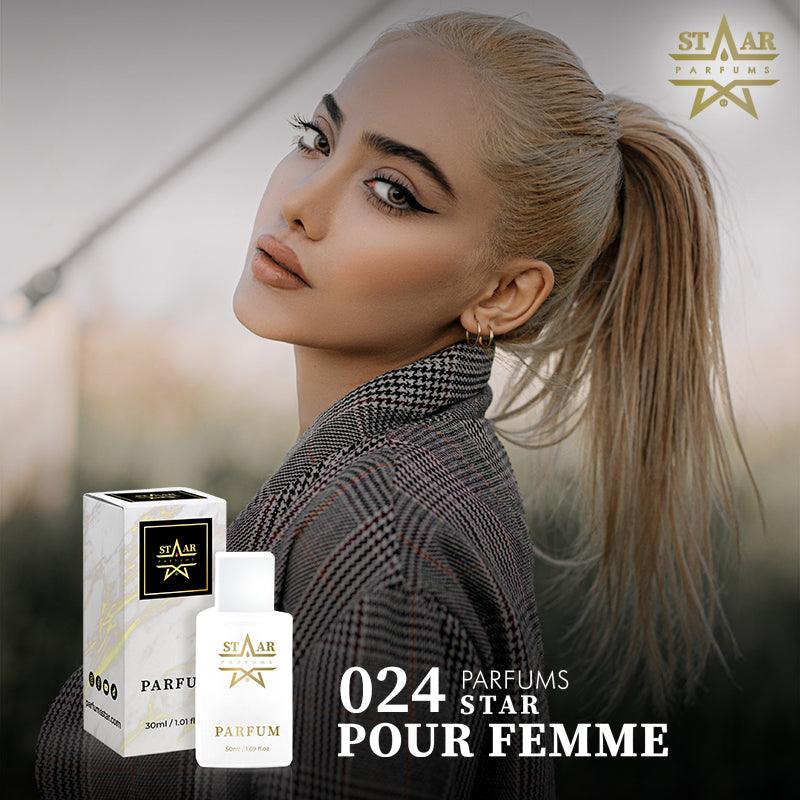 Entdecken Sie die Opulenz von Star Nr. 024, einer Alternative, die Sie zu einem einzigartigen Geruchserlebnis entführt. Jeder Sprühstoß ist eine Einladung zur Verführung, eine Ode an authentische Weiblichkeit. Entscheiden Sie sich für unsere gleichwertigen Parfüme, eine unvergleichliche Möglichkeit, das Geruchserlebnis beliebter Düfte zu erleben.